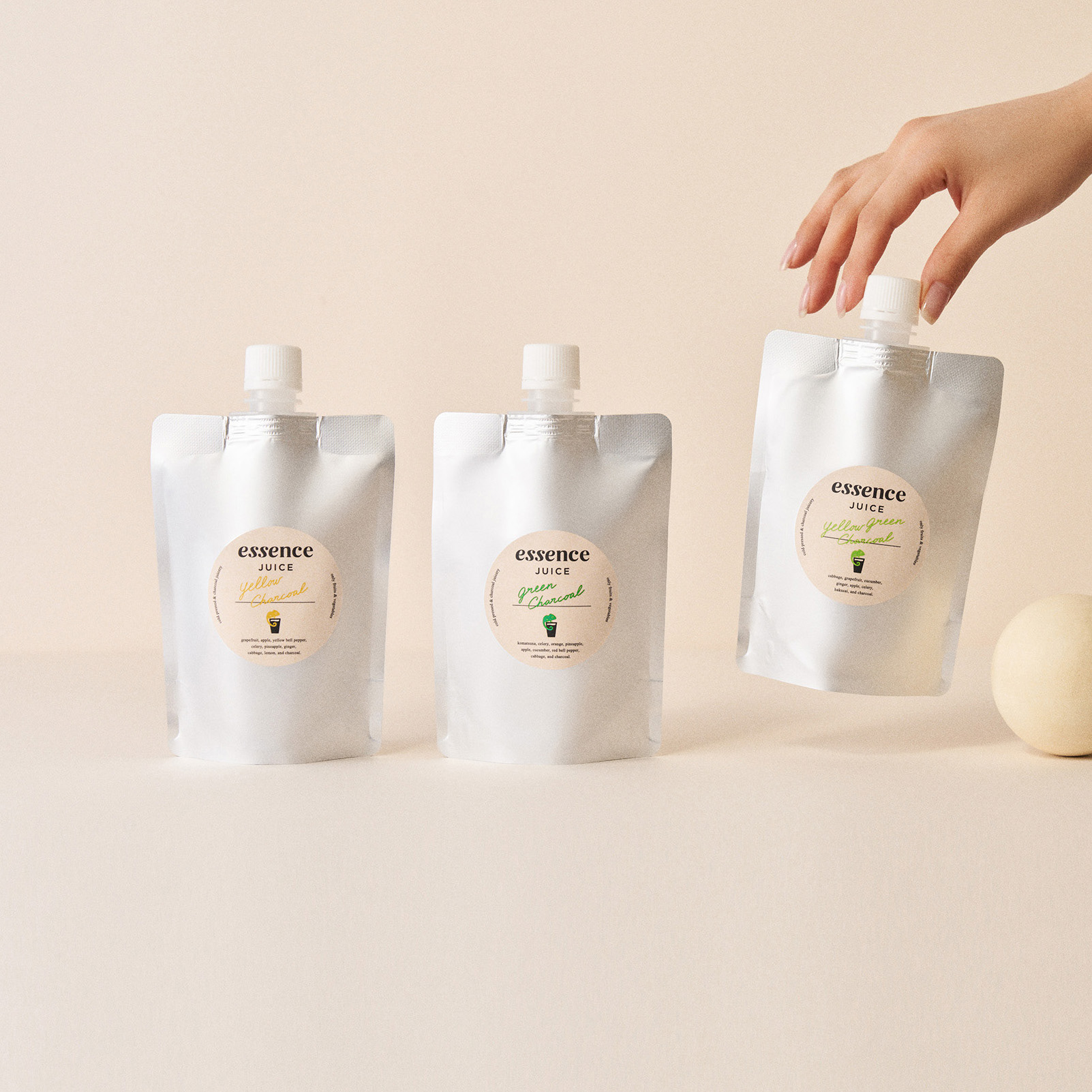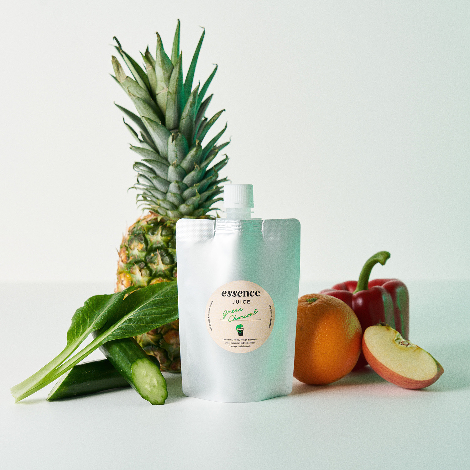 チャコールクレンズジュース「essence juice」のブランディングを担当しました。ロゴデザイン、パッケージデザイン、WEBデザイン、ビジュアルディレクションを担当しています。